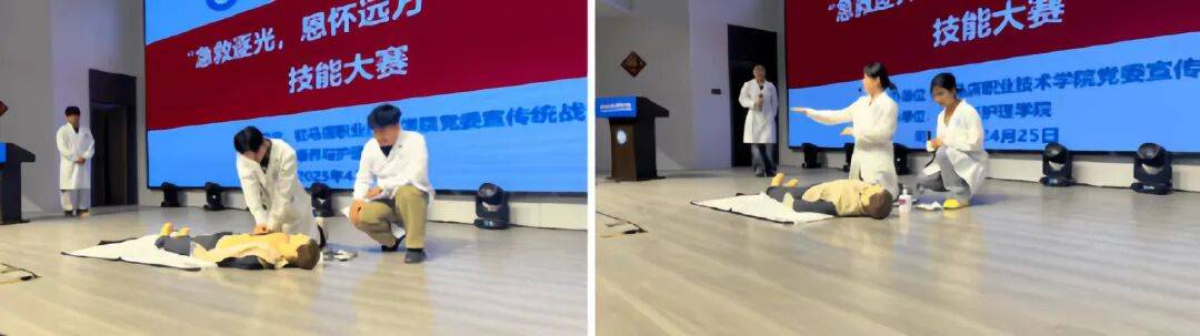 立足学科专业特色,以“以赛促学、以赛促练”为导向,助力学子提升专业能力与综合素养。康养与护理学院“急救逐光,恩怀远方”急救技术技能大赛,围绕单人徒手心肺复苏技术展开比拼,参赛团队沉着规范的操作,展现了“守护生命”的专业素养,赛后院长刘辉强调“急救技能是生命防线,需做到‘快、准、稳’”,为学子专业成长指明方向;公共教学部“心向暖阳,英韵飞扬”英语演讲比赛,24名决赛选手用流利英语讲述中国传统文化、绿色环保理念与青春奋斗故事,高萌、曹淇惠等选手脱颖而出,成为“中国声音”的青年传播者。