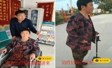 患者2:来时是推车走来的,自己不能不能独立行走,针灸治疗一次后自己高高兴兴独立走着回家了!