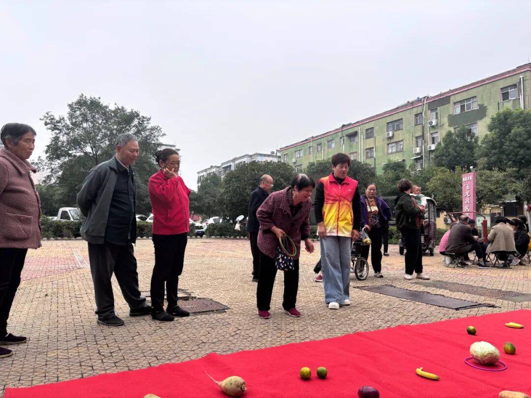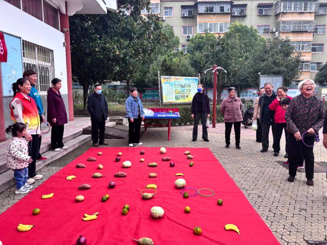 “套圈套果蔬”则考验手眼协调能力,参与者们手持套圈瞄准目标,成功套中蔬菜水果的老人喜笑颜开,将“战利品”作为活动纪念品带回家。