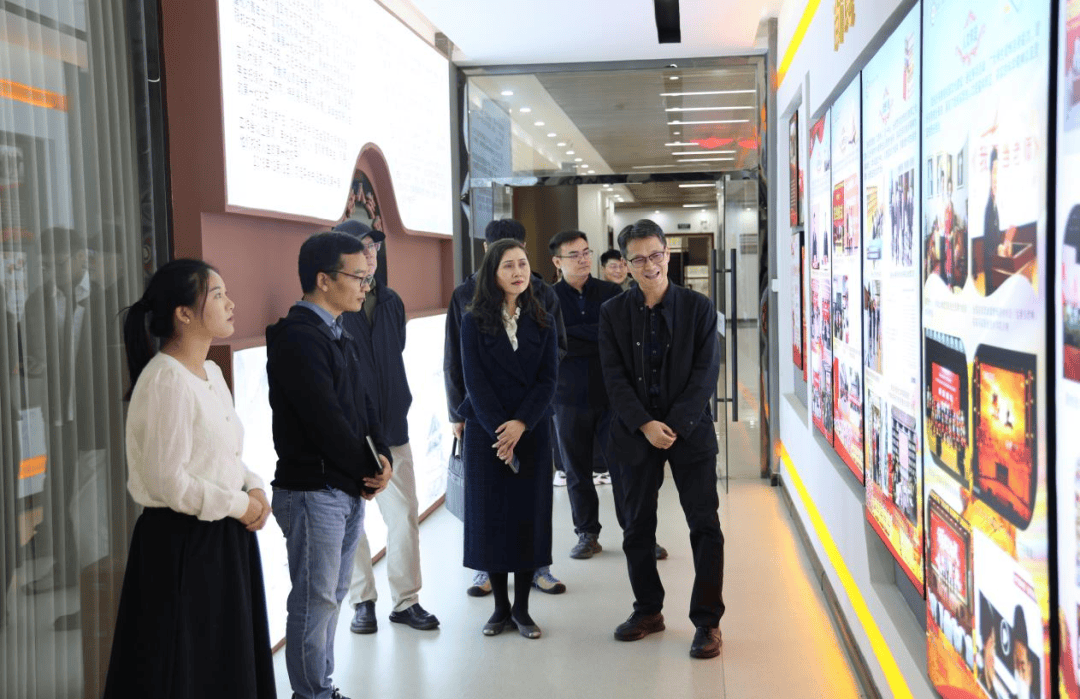 在网易(驻马店)联合创新中心,企业工作人员带领大家深入参观企业展馆,通过实物展示、互动体验、案例讲解详细介绍了网易在数字技术研发、互联网产品创新、区域产业赋能等领域的核心成果,工作人员的细致讲解让同学们对企业的技术迭代与创新模式有了全新认知。