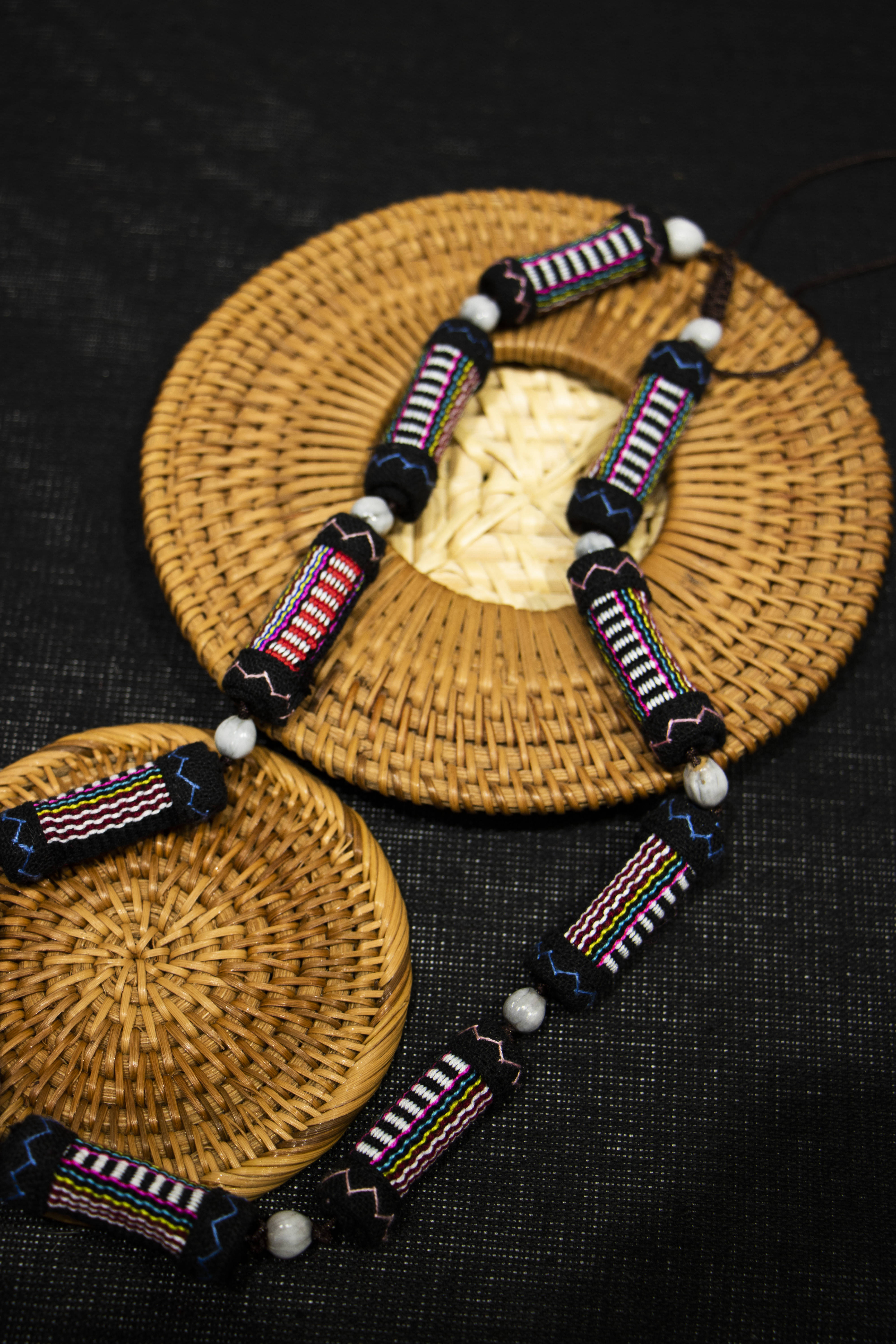 拉祜族传承人把复杂的传统纹样“瘦身”,原本铺满衣襟的图腾,转化成手机屏大小的“迷你符号”,太阳纹只剩一道灵动弧线,梯田纹简化成几何线条,自带“极简高级感”。