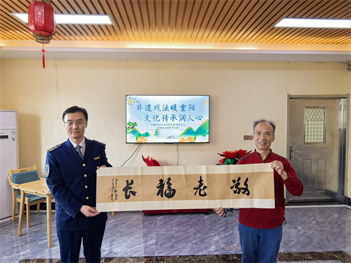 演出尾声,中国艺术研究院访问学者、青岛日报报业集团专委潘修雷将特意创作的行草书法作品《敬老福长》,赠予青岛城运颐养健康产业发展有限公司,以此表达对全体从业人员的敬意与美好祝愿。