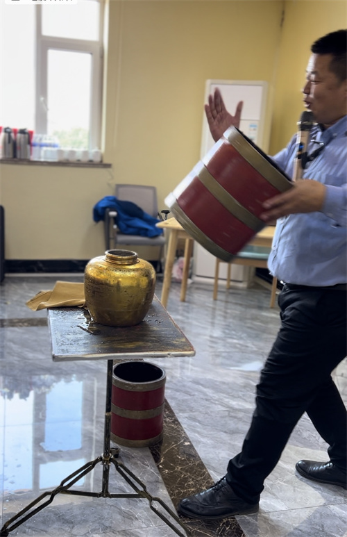 随后,中国杂技家协会会员、青岛市杂技家协会副主席隋化志表演的古彩戏法《罗圈献彩》,从空无一物的罗圈中接连变出玩偶,最后竟变出一口比罗圈更大的水缸,引来满堂喝彩。