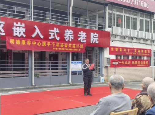 上午9时30分,活动正式启动。大余县个体私营经济协会领导首先致辞,介绍活动以“关爱银龄、传递温情”为核心,旨在通过志愿行动为康养中心老人送去节日关怀,彰显个体私营经济群体的社会责任与担当。