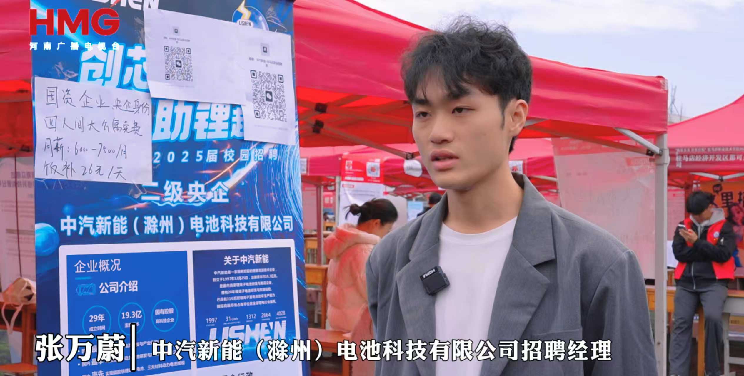 各企业招聘负责人也纷纷向毕业生详细介绍企业发展、岗位要求、薪酬福利及职业成长路径。来自央企中汽新能(滁州)电池科技有限公司的招聘经理张万蔚表示,驻马店职业技术学院优质的教育资源和扎实的教学水平,为企业输送了大量高素质人才,“我们计划招聘50名学生,专业范围较广。学校机电一体化等专业的师资强、学生素质高,绝大部分应聘学生都符合我们的招聘要求,招聘计划完成得很顺利。”