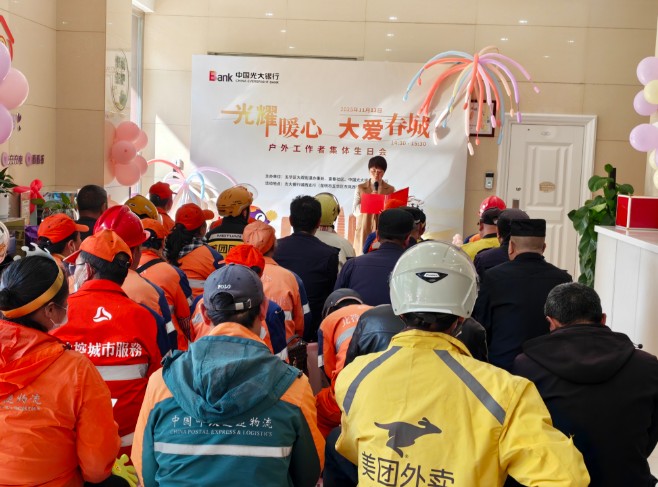 “你们是城市运转的毛细血管,是基层治理的移动探头,每一份辛勤付出都值得被看见、被尊重。”大观街道党工委书记在致辞中动情地说,街道始终将新就业群体服务作为党建引领基层治理的重要抓手,通过整合辖区资源、搭建联动平台,让户外劳动者在奔波中能找到“歇脚地”、感受“家温暖”。中国光大银行昆明城西支行行长也表示,将持续深化“金融+公益”服务模式,把银行网点和“职工驿站”打造成户外劳动者的“暖心港湾”,以实际行动履行企业社会责任。