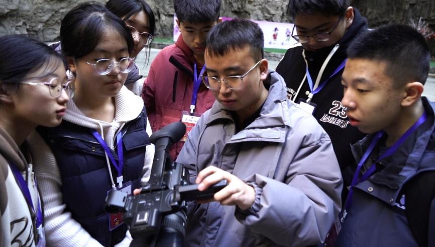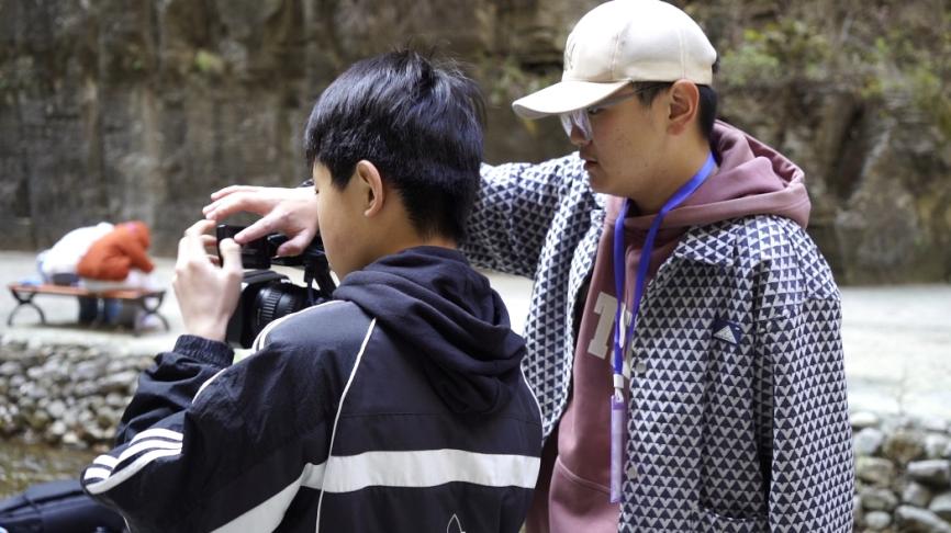 摄影机使用教学环节更是让小记者们直呼“过瘾”。专业老师手持摄影机,从基础的握机姿势教起:“双手托住机器底部,手臂贴近身体,这样能避免画面晃动。”随后又详细讲解参数调节、构图技巧,针对不同场景给出拍摄建议:“拍摄猴戏表演时用特写,能突出猕猴的灵动;拍云步桥用全景,能展现桥梁与山水的融合之美。”小记者们认真学习,还分组进行实操练习,不少孩子很快就掌握了技巧,成功拍出了满意的画面。
