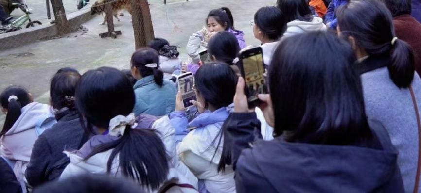 此外,在景区工作人员的精心安排下,小记者们还前往猕猴寨观看了精彩的猴戏表演。随着驯养员的指令,猕猴们完成了骑车、走钢丝等一系列趣味动作,现场欢呼声与笑声不断,小记者们纷纷举起自己的拍摄设备,记录下这欢乐的瞬间。