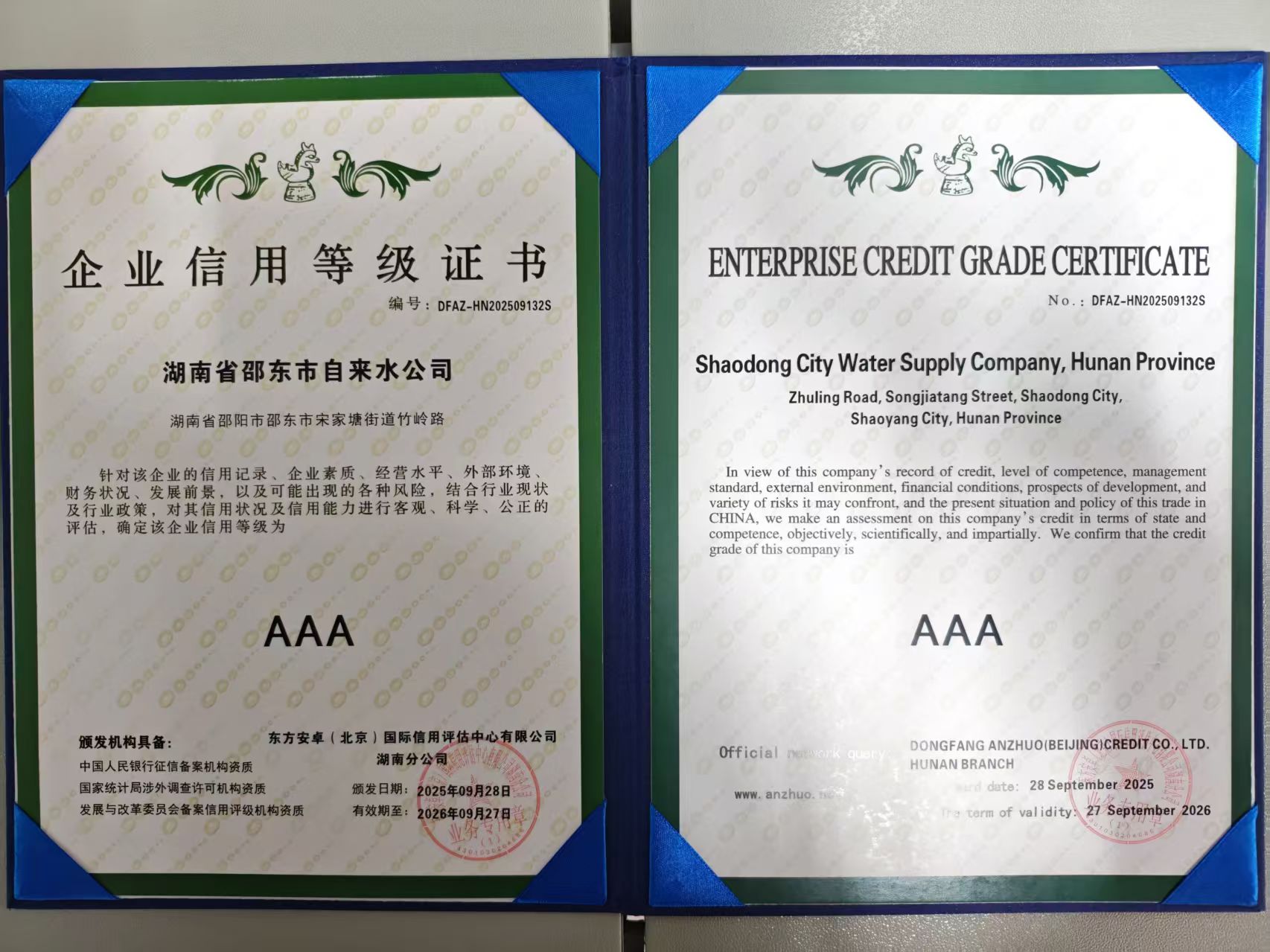 未来,公司将以此次荣誉为新的起点,进一步深化信用体系建设,筑牢诚信根基,持续提升供水服务质量与管理效能,为邵东高质量发展和市民优质用水提供更加坚实的保障。