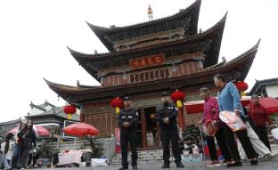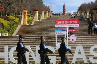 通海警方:在景区入口、核心游览区等人员密集区域,为游客提供路线指引、失物招领等服务,及时解答疑惑,服务到位。