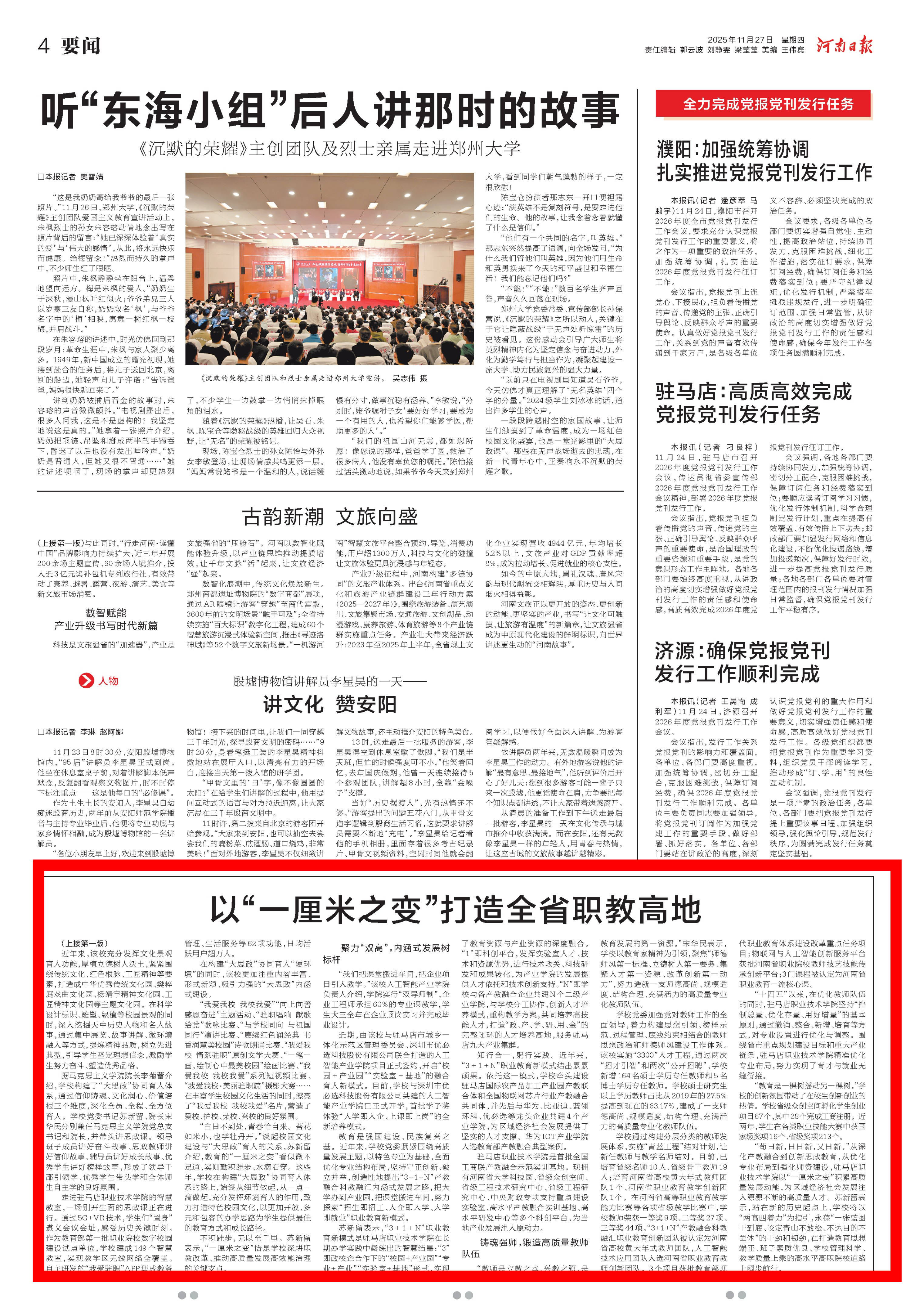 通过长期探索实践,驻马店职业技术学院党委给出了他们的答案——锚定“两高四着力”重大要求,深耕教育的“一厘米之变”,打造高质量职教样板。
