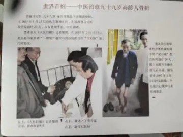 二、治愈创伤性骨折病例:徐闻县下洋镇99岁老人黄淑川,2007年因创伤左股胫骨折,在当地治疗20天没有骨痂生成,经用“宝石液”治疗26天,股胫骨基本形成,慢步行走,系世界上以中医治愈99岁高龄人骨折的首例。昆明市的陆思旻,2009年在解放军昆明总医院住院诊断为右股骨上中段粉碎性、开放性旋转性骨折并重度脑震荡,第三天出院到宝石医院,治疗2个多月,右股骨上中段旋转形粉碎性开放骨折正骨全面愈合效果良好,康复出院。2020年海南省患者黄桂英,87岁,因不慎滑倒致“左侧坐骨骨折”,翻身困难。在当地医院治疗十五天,因身体有多种基础疾病及后背多处压疮,效果不佳,后转来海口谢宝石中医院救治,用中草药“宝石液”方药湿敷患部,内服方药“猪骨方”治疗7天,后背褥疮基本痊愈,左腹股沟疼痛减轻,治疗7天可下床借助器械行走锻炼。2020年8月病情康复良好后出院回家。患者家属赠送锦旗感谢医院。