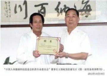 12月,王炳岐与台湾中国医药研究发展基金会傅振邦先生,再次到来考察,并为谢宝石颁发了“中国人体健康科技促进会医药专业委员会”第一届常务理事聘书。