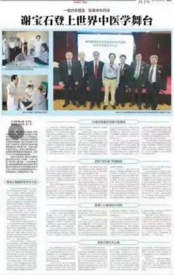 同年5月25日,谢宝石应邀参加了在重庆召开的“中国第七届中医、中西医结合暨非药物疗法防治心脑血管病、糖尿病、肿瘤病高级论坛会。同年6月19日,海南澄迈县县有关部门组成的考察团到雷州宝石医院考察交流,学习和借鉴该院发展中医的先进做法和丰富经验。