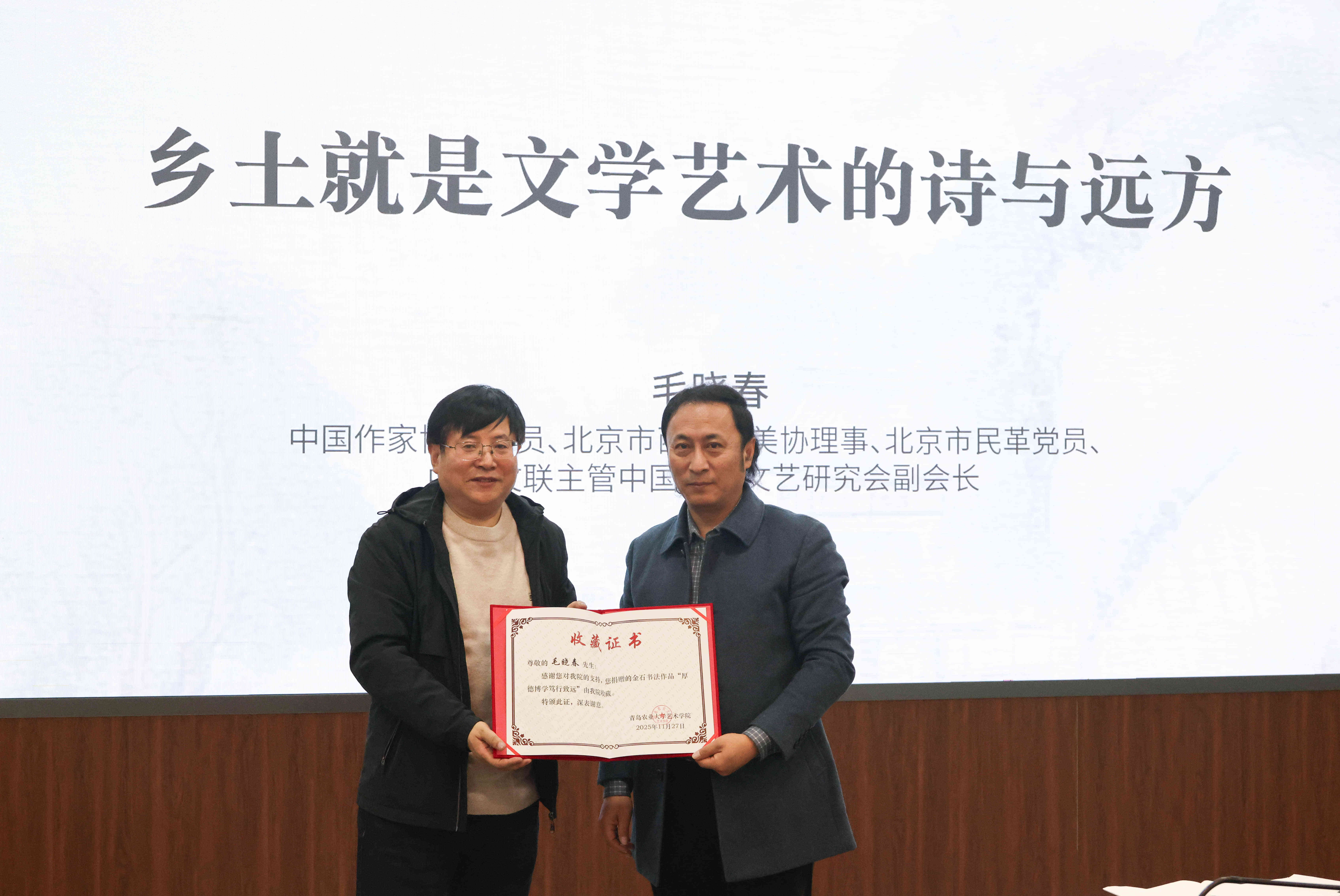 活动中,毛晓春向学校赠送书法作品,李慧斌代表学院接受捐赠并颁发收藏证书,为这场乡土文化盛宴画上圆满句号。此次活动既是青岛农大“名家进校园”系列的重要组成部分,更彰显了学校在培养专业人才的同时,深耕传统文化教育、厚植学生乡土情怀的教育理念,为青年学子搭建了感悟传统、扎根实践的重要平台,进一步激发了学子们扎根乡土、服务乡村的责任感与使命感。