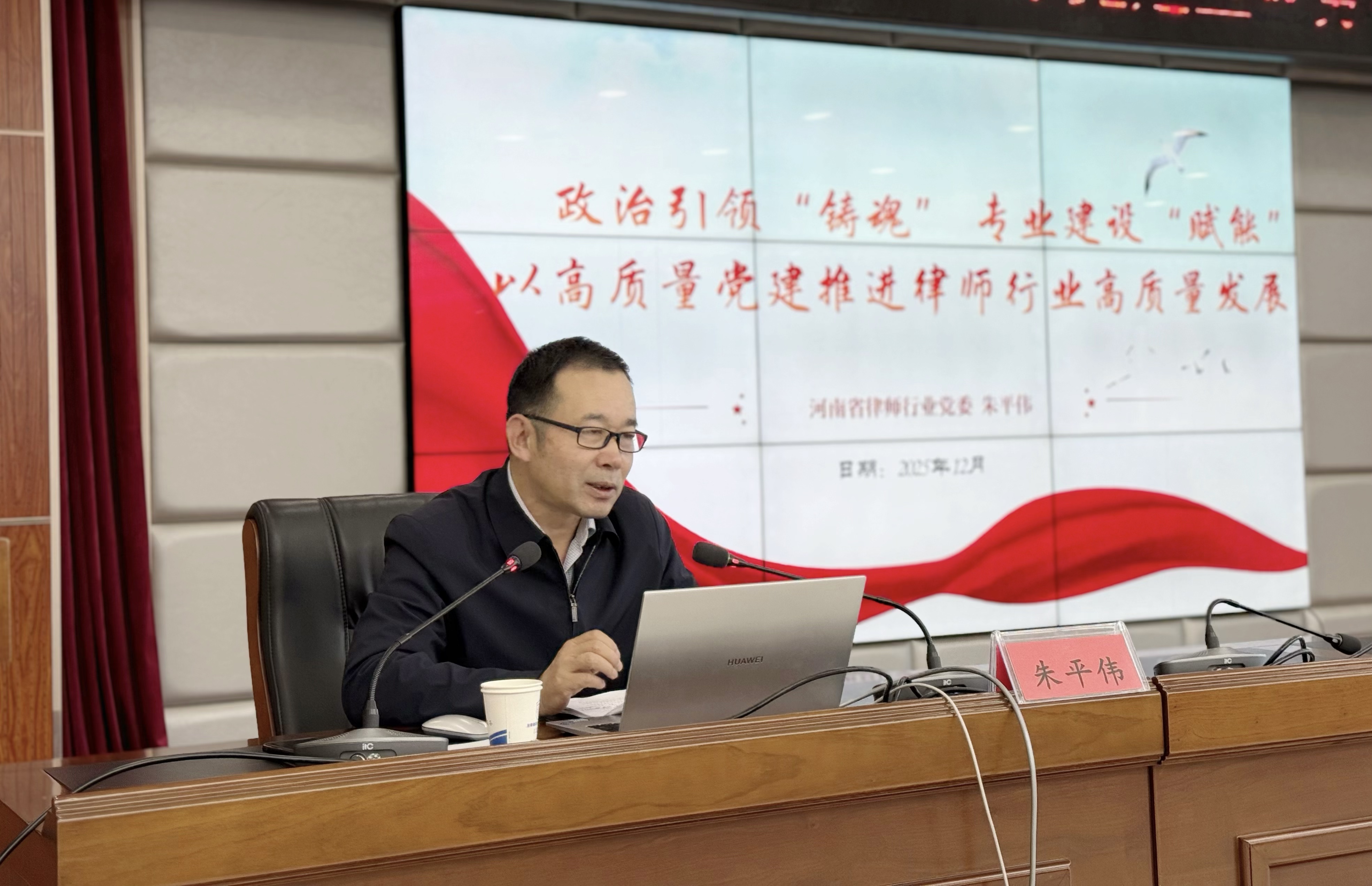 本次培训内容涵盖党的建设、商标侵权判定、民事诉讼证据、刑法适用、有效辩护以及律师行业高质量发展等多个方面,具有很强的实用性和针对性,现场学习氛围热烈浓厚。其中,河南省律师行业党委专职副书记朱平伟以《政治引领“铸魂” 专业建设“赋能”——以高质量党建推进律师行业高质量发展》为题进行主题授课,主要讲解了律师行业的定位、党建工作政策规定、律师行业党建组织体系等重点内容,指导我市律师行业更好地发挥抓党建、带队建、强所建、促发展的政治引领作用。