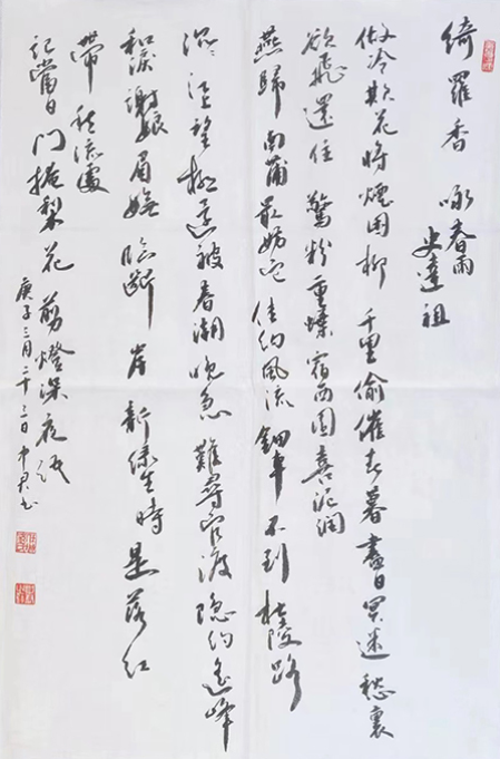 学书多年自认为方有点眉目,其深感学书之难,故其填词一首以自娱自勉:《阮郎归-学书有感》:愚人书拙似蒿长,闲修岭壑方。惯披霜雨自孤芳,谁来莺谷赏?心恍恍、费思量,学书不敢狂。且去拟古寻墨香,秋来菊自黄。