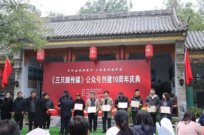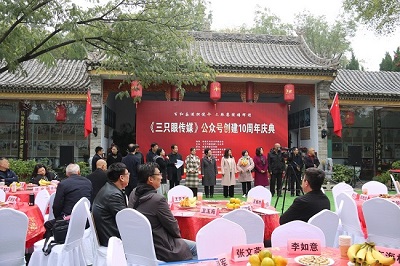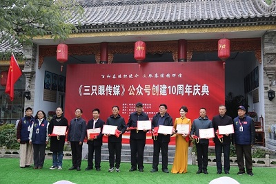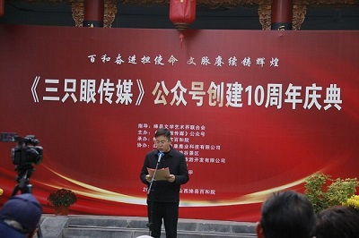中国新闻在线山西讯(通讯员 赵朝凯) 10月26日,“百和奋进担使命,文脉赓续铸辉煌——《三只眼传媒》公众号创建10周年庆典”活动,在山西绛县申家百和院隆重举行,100名本地和来自全国各地的作家及文学爱好者欢聚一堂,围绕为宣传绛县,繁荣绛县文学事业,挖掘培养文化人才做出突出贡献的《三只眼传媒》平台,交流学习,点评分享,表彰奖励一批公众号优秀作者、优秀分享读者和“我与《三只传媒》这十年”征文获奖者、“走进申家百和院”征文获奖者。运城市人大常委会副主任、九三学社运城主委贾爱珍发来贺信,绛县文联主席靳钰盛等到场讲话祝贺。庆祝活动以文友们边座谈交流、边表演节目的形式进行,现场气氛热烈而隆重。