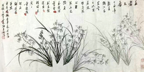 金晓海笔下的兰竹等花卉自成风貌,出笔有抑有扬,用墨浓淡相宜,虚实相生,错落有致。