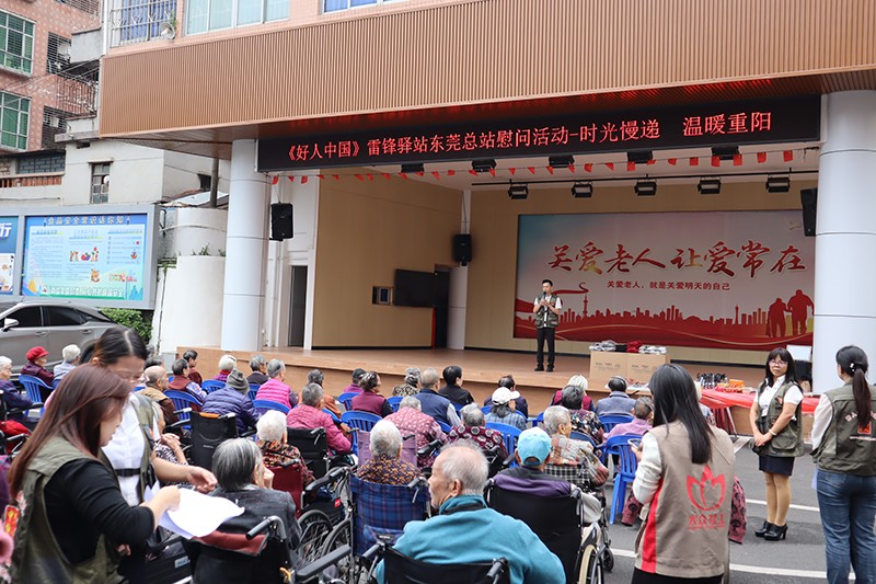 随后,樟木头敬老院院长与好人中国雷锋驿站东莞总站站长李雄飞同志先后致辞。院长蔡锦霞对志愿者的到来表达热烈欢迎与诚挚感谢,称这份关怀为老人们的生活注入了温暖与活力;李雄飞同志则表示,此次活动是践行雷锋精神与尊老美德的具体行动,未来将持续以爱心陪伴老年群体。