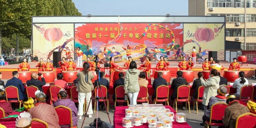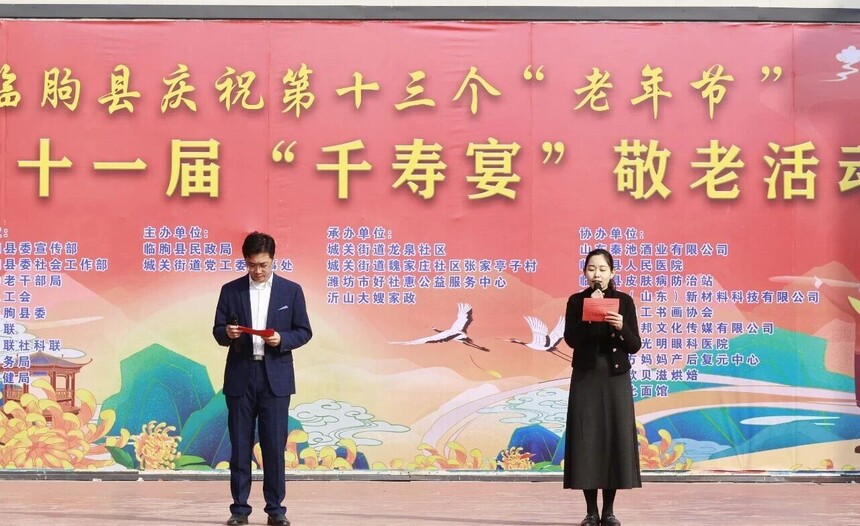 岁岁重阳,今又重阳。在这个寓意吉祥、饱含敬老之情的传统佳节,临朐县老百姓大舞台暖意融融、欢声阵阵,第十三个“老年节”暨第十一届“千寿宴”活动在此隆重举行。本次活动以“弘扬敬老美德,共庆福寿安康”为核心,汇聚爱心力量,为老人们送上了一场充满温情与敬意的节日盛宴。