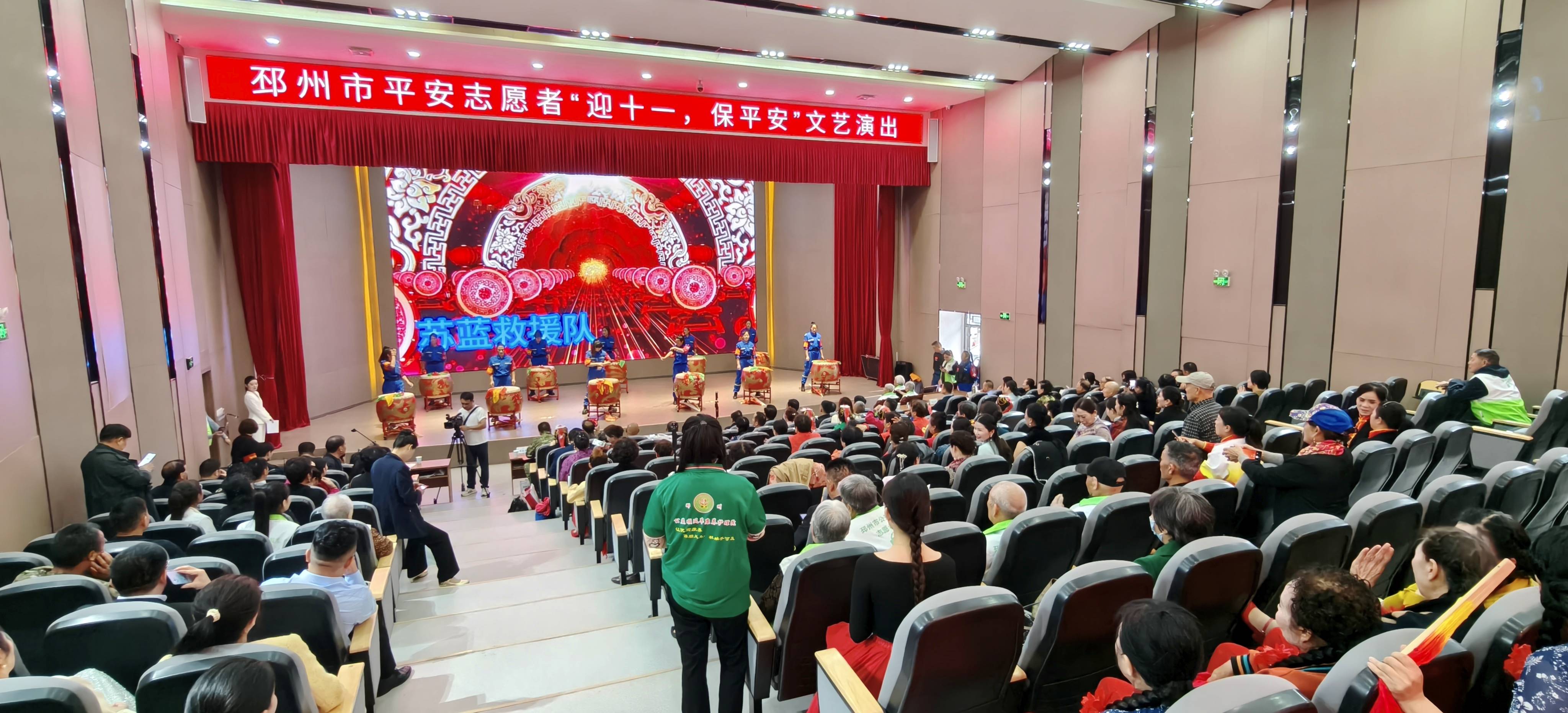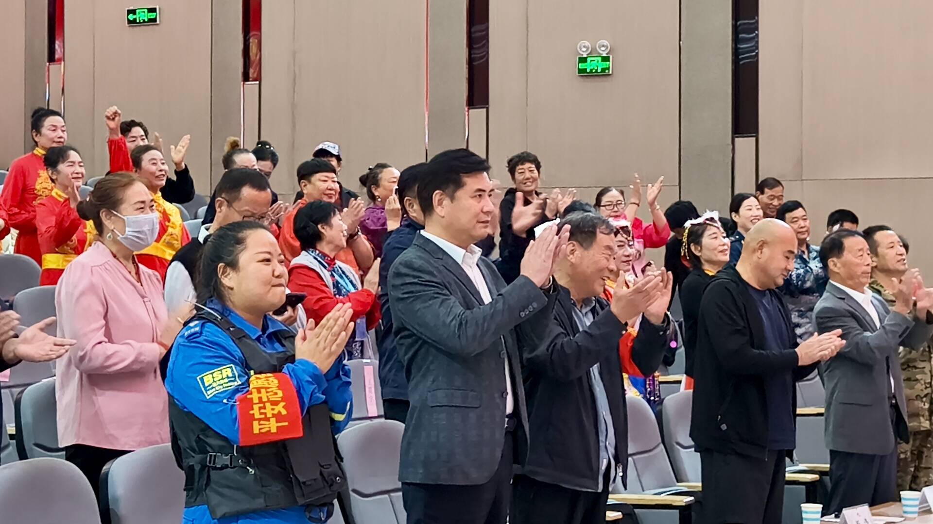 文艺汇演首先在苏蓝救援队“威风大鼓”中拉开序幕。激昂的鼓点瞬间点燃了在场志愿者和观众的热情,营造出了热烈的喜庆节日气氛。