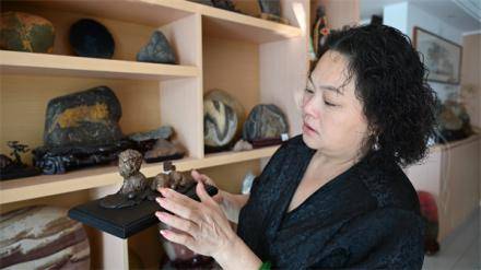 林苏娥不仅爱石,更心系家国。她将三个孩子送回国内接受中文教育,自己则奔走于世界各地,传播中国石文化。2023年,她受邀成为世界非物质文化遗产研究院副院长。