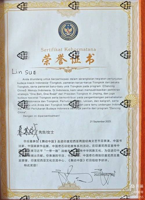 林苏娥是青田县奇石协会重要成员,在奇石与陨石领域造诣深厚。她多次参与国际文化交流,如受邀赴印尼参与《舞动中国》活动,通过奇石与陨石展示中华文化,赢得赞誉,促进中印友好。