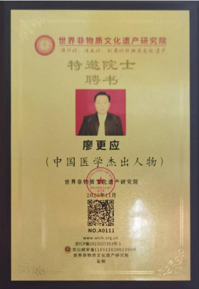 2023年1月由上海科学普及出版社书刊登载:“喜迎中国共产党第二十次全国代表大会胜利召开”新百年.中国力量,共和国新时代建设者成就博览,《封面人物廖更应》。2023年5月由全国科学研究成果管理中心、国人荣誉奖库星级评审组授予品牌住房康养基地“国家科技成果一等奖”。2024年6月由健康中国工程委员会中药文化弘扬工程办公室“优秀示范基地”品牌住房康养。这必定是纸上谈兵,示范工程没有落实,等于空谈。下代年青人急待“品牌住房康养基地”出现社会。